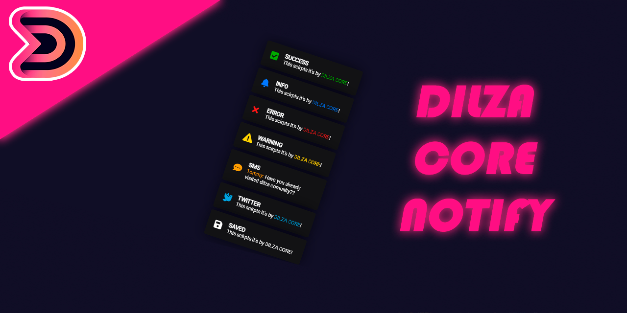 exports['dilza-notify']:Alert("INFO", "This scirpts it's by <span style='color:#1c77ff'>DILZA CORE</span>!", 5000,'info')